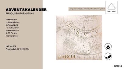 24 Tage lang können Sie mit dem BABOR Ampullenkalender einzigartige und luxuriöse Verwöhnmomente schaffen.